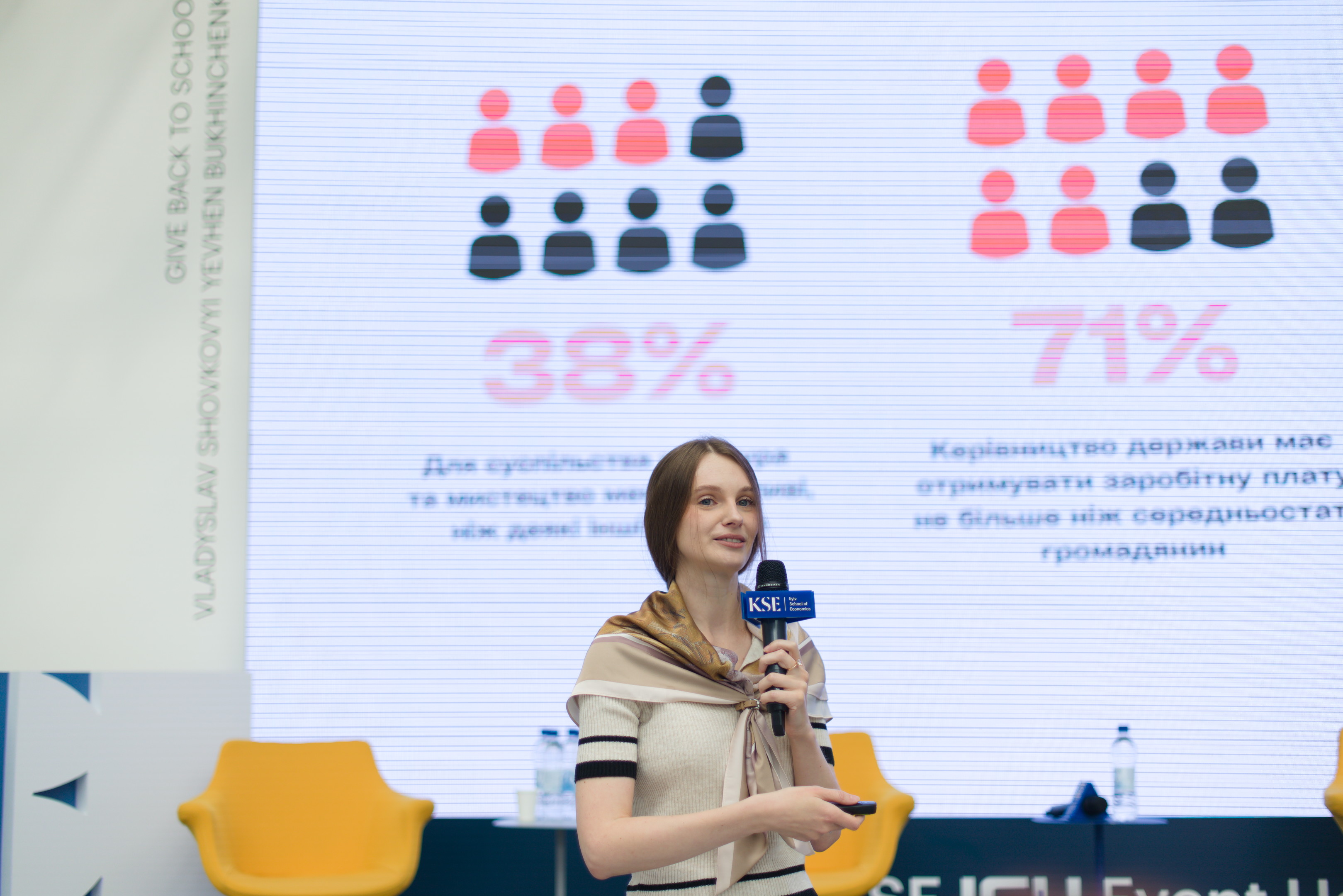 Розповіли також про наше дослідження світогляду українських підлітків. Зокрема, згадали, що 71% опитаних дітей вважає, що керівництво держави має отримувати заробітнє плату не більше, ніж середньостатичний громадянин.